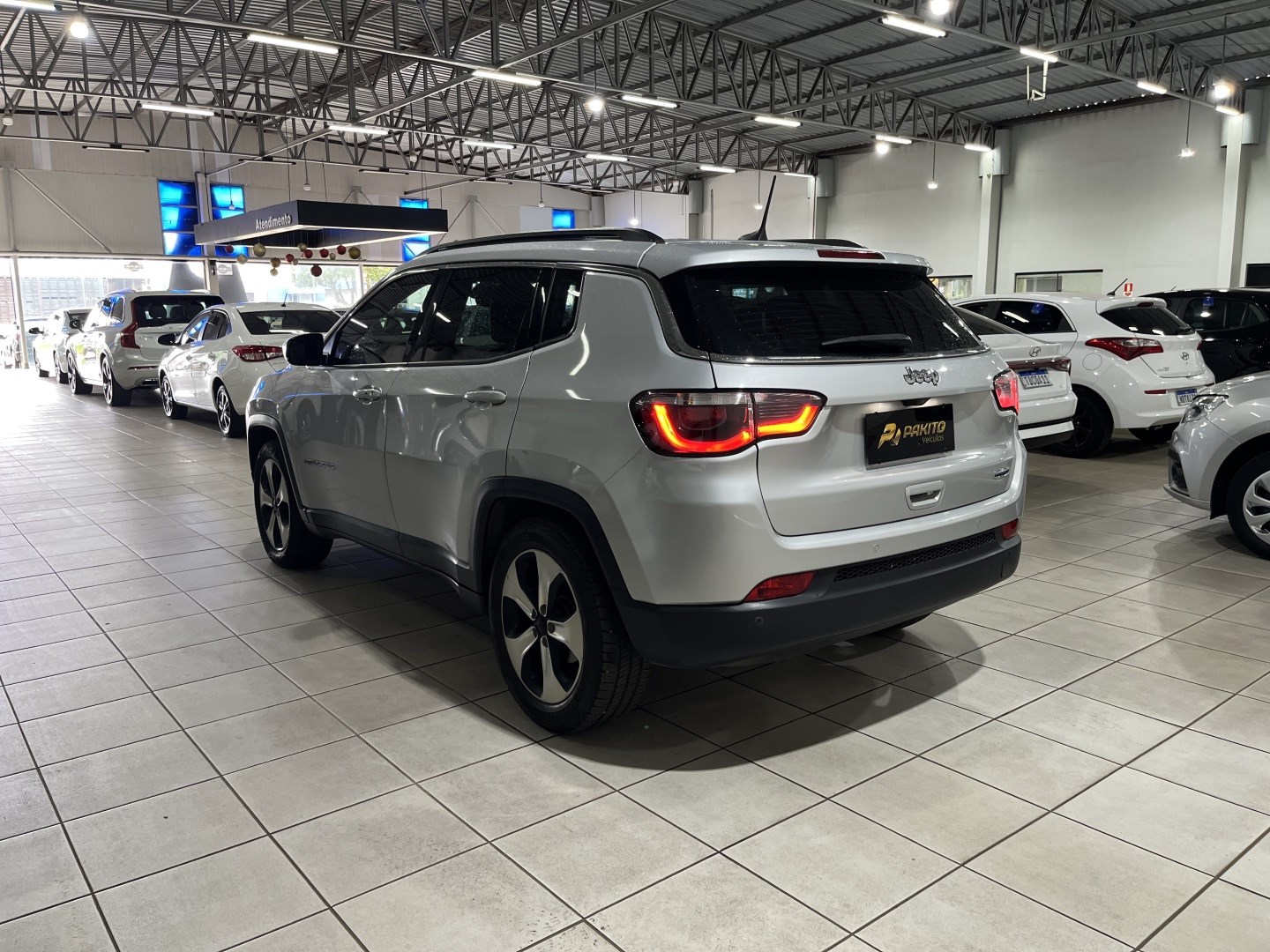 JEEP COMPASS LONGITUDE 2.0 FLEX AUTOMÁTICO | 2017/2018O Jeep Compass Longitude é um SUV que entrega conforto, presença e bom nível de acabamento, sendo uma das referências entre os SUVs médios da época.Equipado com o motor 2.0 flex aspirado, oferece até 166 cv de potência e 20,5 kgfm de torque, com desempenho equilibrado para uso urbano e rodoviário. O câmbio automático de 6 marchas proporciona uma condução confortável e segura.Com excelente posição de dirigir e bom isolamento acústico, é ideal para quem busca um SUV robusto e confortável para o dia a dia.Informações TécnicasAno/Modelo: 2017/2018Motor: 2.0, 4 cilindros, FlexPotência: 166 cv (E) / 159 cv (G)Torque: 20,5 kgfm (E) / 19,9 kgfm (G)Câmbio: Automático de 6 marchasTração: DianteiraDireção: ElétricaFreios: Disco nas quatro rodas com ABSCapacidade do porta-malas: 410 litrosCapacidade do tanque: 60 litrosCapacidade para: 5 ocupantesConsumo MédioCidade: aproximadamente 5,5 km/l (E) / 8,1 km/l (G)Rodovia: aproximadamente 7,2 km/l (E) / 10,5 km/l (G)(Pode variar conforme condução.)Principais Equipamentos da Versão Longitude• Central multimídia com Android Auto e Apple CarPlay• Ar-condicionado digital dual zone• Direção elétrica• Vidros, travas e retrovisores elétricos• Sensor de estacionamento traseiro• Câmera de ré• Piloto automático• Controle de estabilidade e tração• Assistente de partida em rampa• Airbags frontais, laterais e de cortina• Rodas de liga leve aro 18• Faróis de neblinaO Compass Longitude é ideal para quem busca um SUV confortável, com bom espaço interno e forte presença no mercado, sendo uma escolha segura para uso urbano e viagens.Um modelo com boa revenda, acabamento acima da média e padrão Jeep de robustez.- Apto a financiamento- FAÇA SUA APROVAÇÃO VIA WHATSAPP • Vários modelos financiando em até 60x • Solicite seu atendimento com um consultor de vendas e conheça as formas de negociações disponíveis- Acompanhe também as nossas redes sociais, atualizadas diariamente com novidades e o dia a dia da Pakito Veículos-C-Vendedora Leidiane 1. GarantiaDe fábrica: Veículo não está na garantia de fábrica.2 . Manutenções e Revisões-Revisões realizadas: 24/04/2025 com 155.586 km-Revisões na concessionária: não-Próxima revisão: 24/04/2026 ou 165.585 km3. Troca de Óleo-Última troca óleo do motor: 24/04/2025 com 155.585 km -Próxima troca- óleo do motor: 24/04/2026 ou 165.585 km-Última troca- óleo do câmbio: 155.585 km dia 25/04/2026 -Próxima troca- óleo do câmbio: 215.586 km4. Procedência-Número de donos anteriores: não sabe